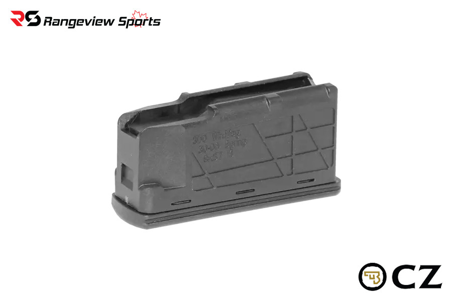 The CZ 600 5-round magazine is designed for the CZ 600 series of rifles chambered in .30-06 Springfield / .300 Winchester Magnum. NOTE: The magazine ONLY holds 3 rounds of .300 Winchester Magnum.