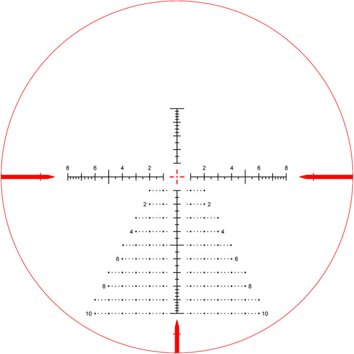 First Focal Plane (FFP) Design: The reticle is positioned on the first focal plane, scaling with magnification to allow for precise range estimation and ballistic compensation at any magnification level.
