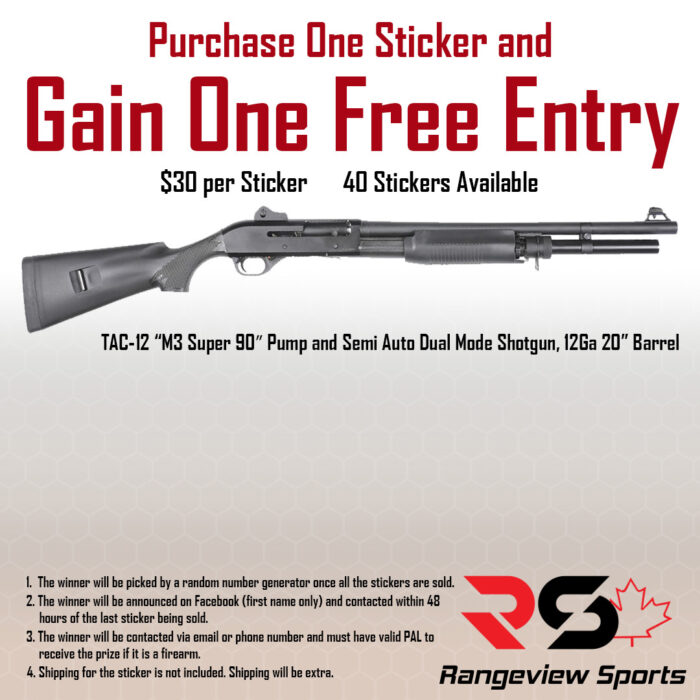 Rangeview Sports Sticker (TAC-12 “M3 Super 90″ Pump and Semi Auto Dual Mode Shotgun, 12Ga 20” Barrel)