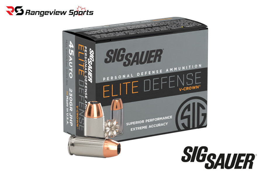 Sig Sauer Elite Defense 45 ACP Pistol Ammo, 230gr Elite V-Crown JHP – 20Rds
