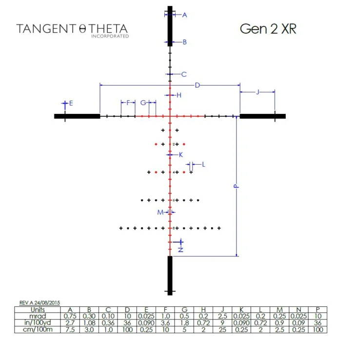 | Reticle options | Gen 2, Gen 2XR, MoA, GEN 3XR |